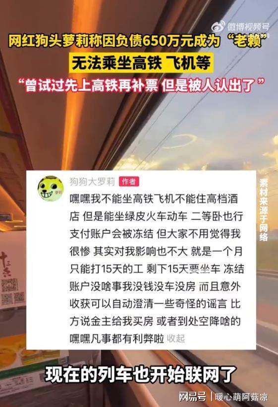 热搜“狗头萝莉负债650万成老赖”背后,是一份网红经济浪潮下,个体与资本签下的沉重契约。1月7日,网红“狗头萝莉”自曝因背负650万元违约债务被列为失信被执行人,出行受限,高铁飞机皆无法乘坐。她自述,早年因不理解“独家直播”含义,在遭遇原直播公会三个月欠薪并收回账号后,申诉无果转而更换平台开播,未曾想就此坠入天价债务深渊。